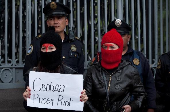 La detención de la banda de punk Pussy Riot hizo eco hasta en México, particularmente en el Distrito Federal, donde una decena de jóvenes se manifestó frente a la embajada de Rusia.