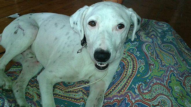 Una de sus patas traseras estaba destrozada, por lo que debieron introducirle un clavo intraóseo. Además, había dado positivo en la prueba de leishmania.