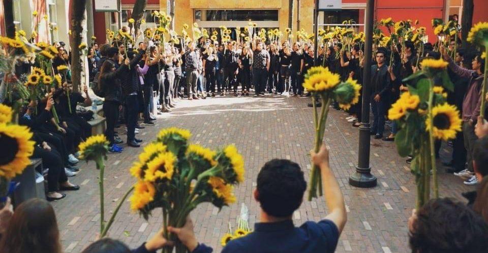 Los estudiantes comenzaron el acto alrededor de las 12 del día de este viernes en la llamada Plaza Roja del Instituto, donde se congregaron con girasoles, la flor favorita de Fernanda.