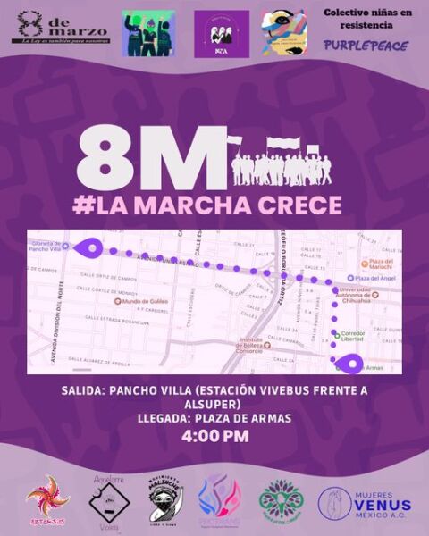 El punto de encuentro es en la glorieta Pancho Villa, frente a estación Sor Juana, partirán a las 16:00 horas y llegarán hasta la Plaza de Armas, en el centro de Chihua