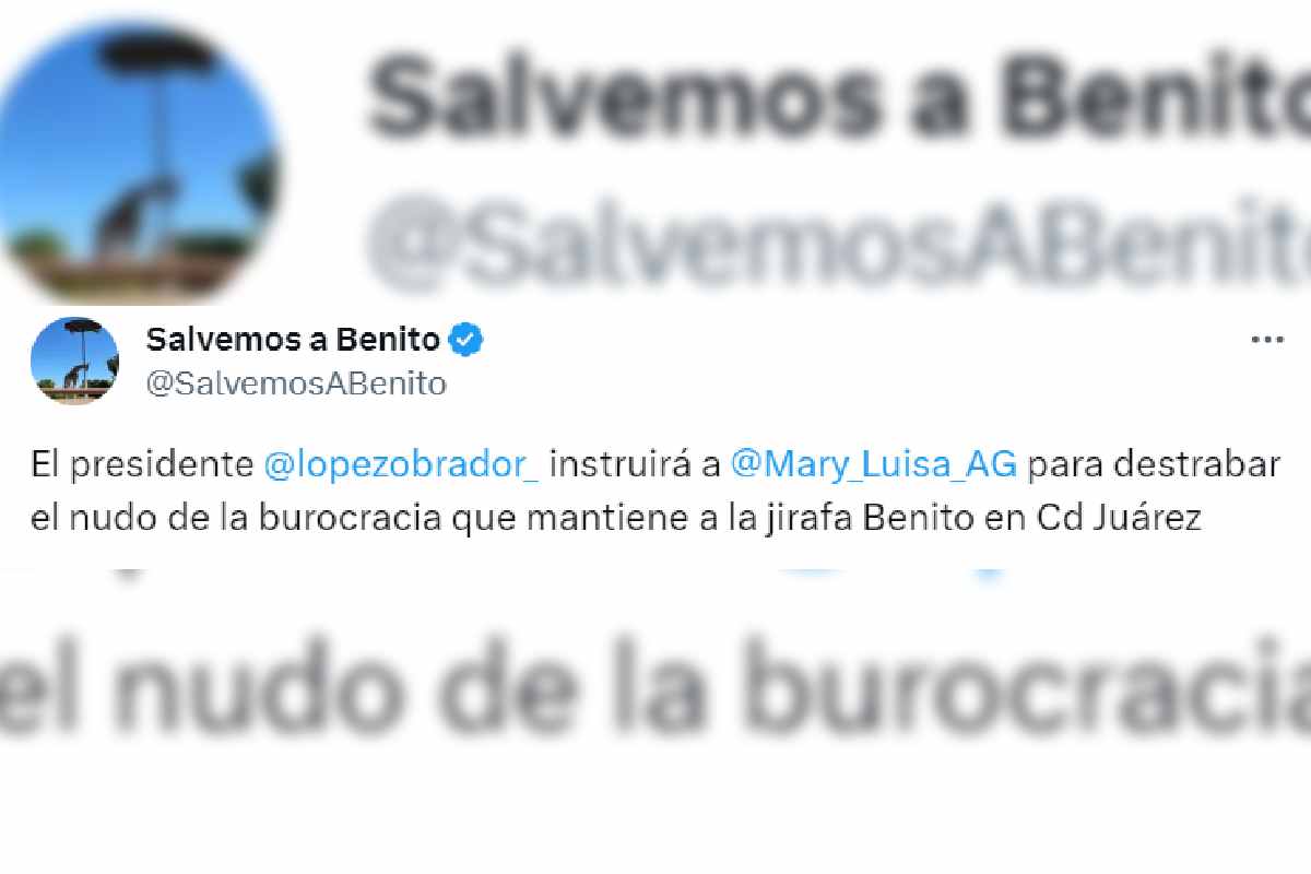 En un comunicado del gobierno de Chihuahua, el pasado 25 de mayo de 2023, la gobernadora Maru Campos anunció a los juarenses cuál sería el nombre de “la nueva mascota” del Parque Central de Ciudad Juárez que días antes habían recibido: ‘Benito’, la jirafa que presuntamente llegó como “donación” a la entidad.