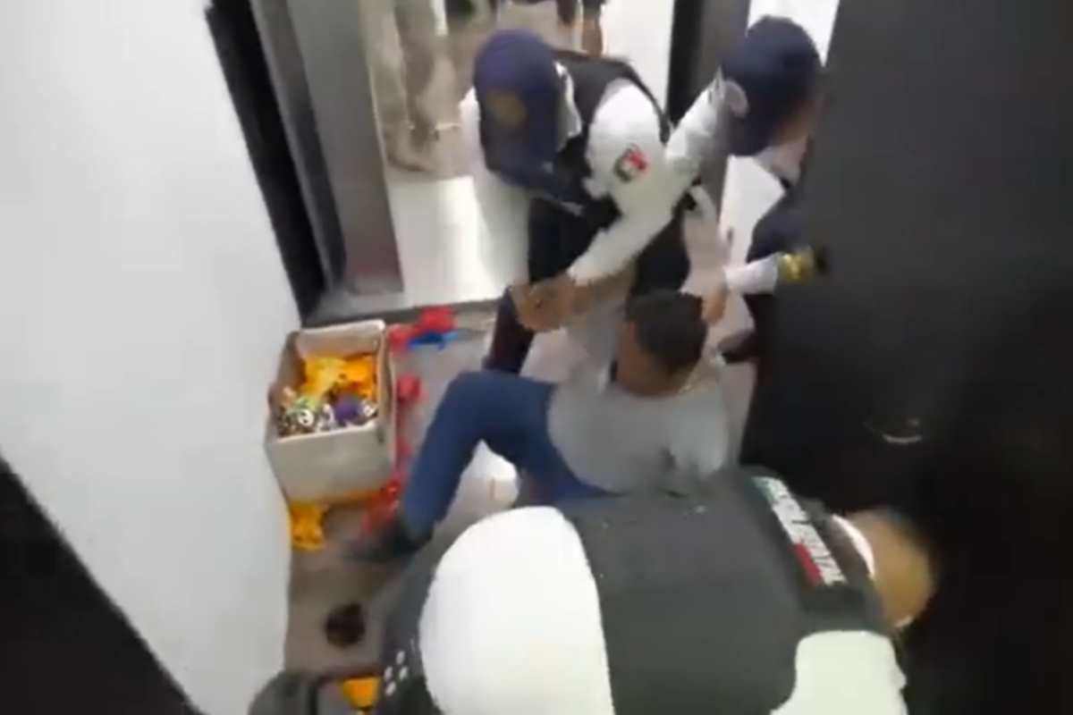 En los videos difundidos se observa a los elementos de seguridad sometiendo a uno de los grupos morenistas. Incluso uno de ellos es arrastrado para sacarlo del recinto.