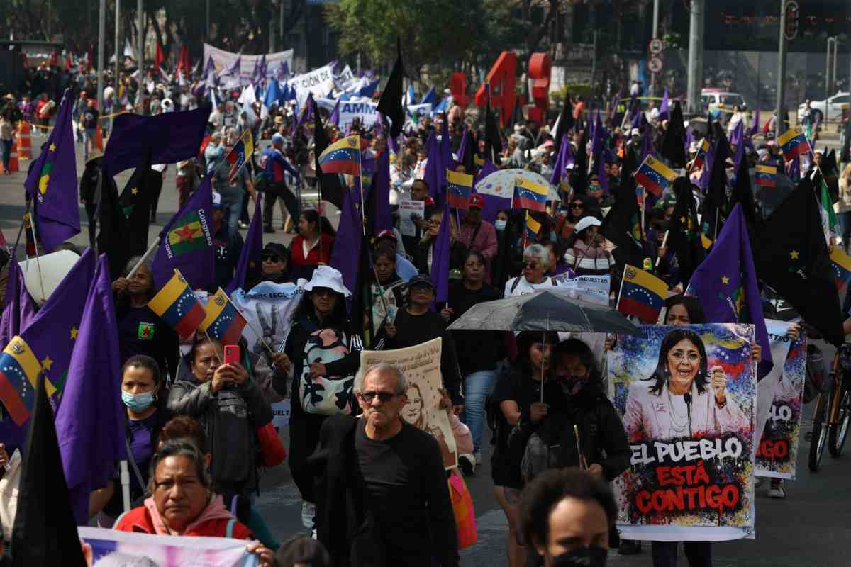 Colectivos, asociaciones y activistas marcharon este sábado para protestar en contra de la intervención por parte de Estados Unidos a Venezuela, así como por la detención de Nicolás Maduro, presidente depuesto de Venezuela, y su esposa Cilia Flores, hace una semana.