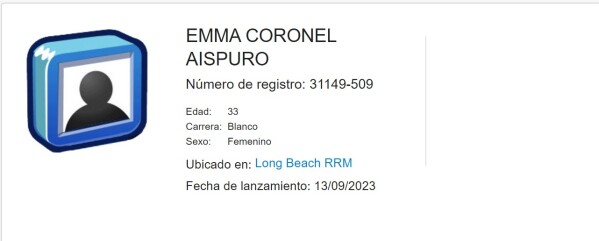 “Emma Coronel Aispuro fue trasladada el 30 de mayo de 2023, del Federal Medical Center (FMC) Carswell a confinamiento comunitario supervisado por la Oficina de Administración de Residencias de Reingreso (RRM) en Long Beach del Buró Federal de Prisiones (BOP)”, dijo Donald Murphy, vocero del BOP, a Univision Noticias.
